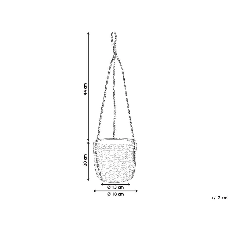 boho hangplant. Verbeter de uitstraling van je interieur en creรซer een gastvrije, gezellige sfeer dankzij de natuurlijke accessoires. Deze decoratieve bloempot is een perfecte aanvulling die goed past bij veel interieurontwerpen. Het stuk is handgeweven, gemaakt van puur zeegras. Door de daaraan bevestigde touwtjes kan de plantenbak op elke gewenste plek worden opgehangen, waardoor je geen plekken meer op de planken of toonbanken nodig hebt om meer bloemen in huis te halen.