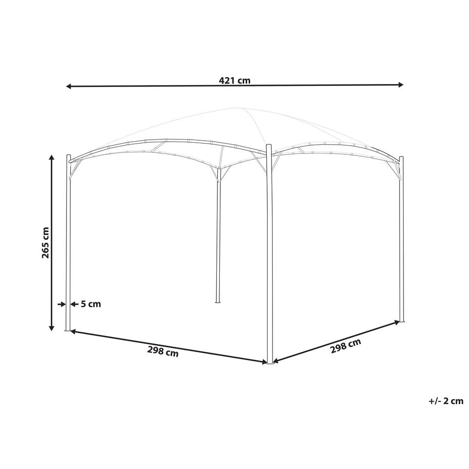 Extra informatie: Om veiligheidsredenen moet het paviljoen aan de grond worden vastgezet. De set bevat metalen haringen om het stuk op het gazon te bevestigen, maar het bevestigingsmateriaal voor andere oppervlakken is niet inbegrepen.