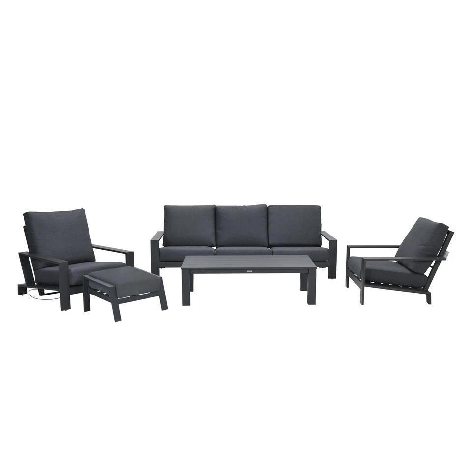 Deze Coba voetenbank is gemaakt van onderhoudsvrij en weerbestendig aluminium met een stevige donker grijze poedercoating.