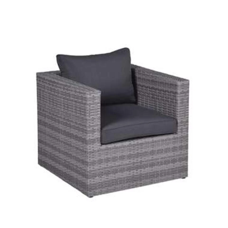 De Lyon loungeset van Garden Impressions is met recht één van de meest populaire sets uit de collectie door de goede prijs-kwaliteit verhouding. Wil je de Lyon loungeset uitbreiden? Kijk dan eens naar deze Lyon lounge stoel, een mooie en comfortabele loungestoel voor buiten. In deze loungestoel zit je heerlijk door de fijne meegeleverde loungekussens. De Lyon lounge stoel combineer je uitstekend bij de Lyon lounge hoekbank, maar kan uiteraard ook prima los aangeschaft worden. Combineer deze stoel bijvoorbeeld met een mooi bijzettafeltje en geniet van een heerlijk bakje koffie in deze fijne stoel. De Lyon lounge stoel is vervaardigd uit een aluminium frame met daaromheen een kwalitatief wicker vlechtwerk draad in de kleur organic grey. Dit wicker is gemaakt van stevig kunststof waardoor de set zeer duurzaam is. De Lyon lounge stoel wordt bovendien geleverd inclusief zit- en rugkussens. De kussens zijn voorzien van een rits waardoor de hoezen gemakkelijk met de hand gewassen kunnen worden. De kussens zijn niet 100% waterdicht, maar zijn wel voorzien van een waterafstotende coating. Dit is vooral erg praktisch als er bijvoorbeeld op het kussen wordt gemorst met drinken. Je veegt het vocht er namelijk gemakkelijk weer af. Na gebruik kunnen de kussens opgeborgen worden in de schuur of een mooie kussenbox. De afmetingen van deze stoel zijn: D 74 x B 74 x H 64 cm. Een uitgebreide collectie loungestoelen vind je binnen de categorie tuinmeubelen. Tuinmeubelen van verschillende mooie merken.