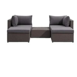 Modulaire loungeset Dordogne biedt ruimte om met 2ย personen heerlijk te relaxen. De gehele serie is gemaakt van hoogwaardig aluminium en kunststof met een wicker look. Voordeel van kunststof wicker is dat deze veel langer mee gaat dan gewoon wicker. Zo kan jij dus optimaal genieten van zowel de kwaliteit als zijn prachtige uitstraling. Deze tuinset wordt geleverd incl. donkergrijze Brest loungekussens, gemaakt van katoen/polyester. Dit is een zeer complete en luxe set die jou verzekerd van vele uren relaxen in de tuin. Laat de zon maar schijnen!