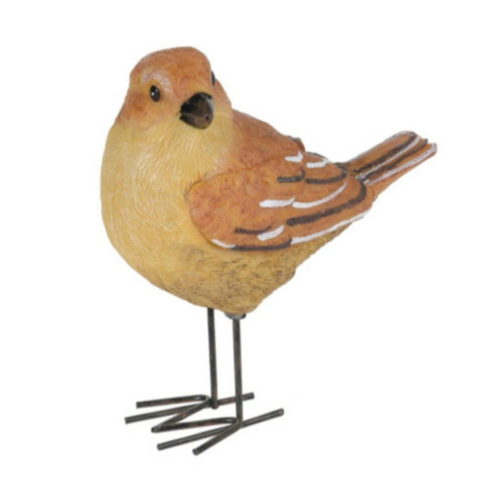 Decoratie Tuinbeeld van een vogeltje, type lijster. Dit dieren beeldje/deco stuk is gemaakt van metaal en ongeveer 10 cm. Deze beeldjes zijn geschikt voor binnen in huis en/of buiten in de tuin. Super sfeervol en kleurrijk, echt een aanwinst in uw tuin.
