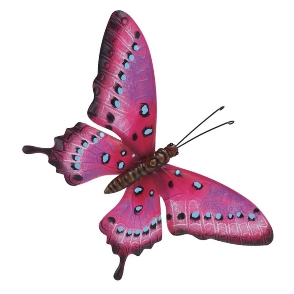 Merkloos Tuindecoratie Muurvlinder – Roze En Lichtblauw – Metaal – 44 Cm