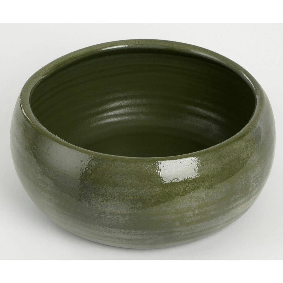 Bloempot schaal in de kleur glanzend groen gemaakt van keramiek voor een kamerplant – H12 x D28 cm. Deze ronde bloempot uit de Lester serie met mooie afwerking is een bloempot/plantenpot basic voor in elke huiskamer. Gemaakt van terracotta/keramiek. Binnen gebruik. Diameter: 28 cm. Hoogte: 12 cm.