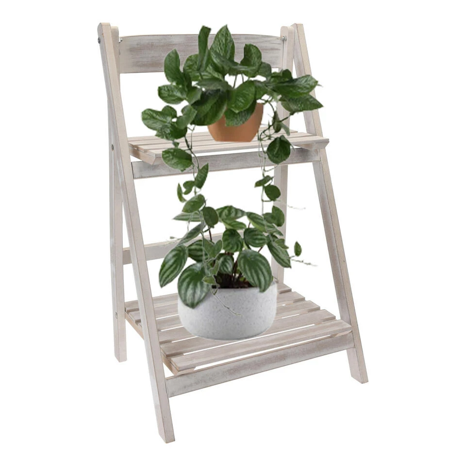 Pro Garden Plantenrek – Whitewash – Hout – Opvouwbaar – 32 X 41 X 66 Cm