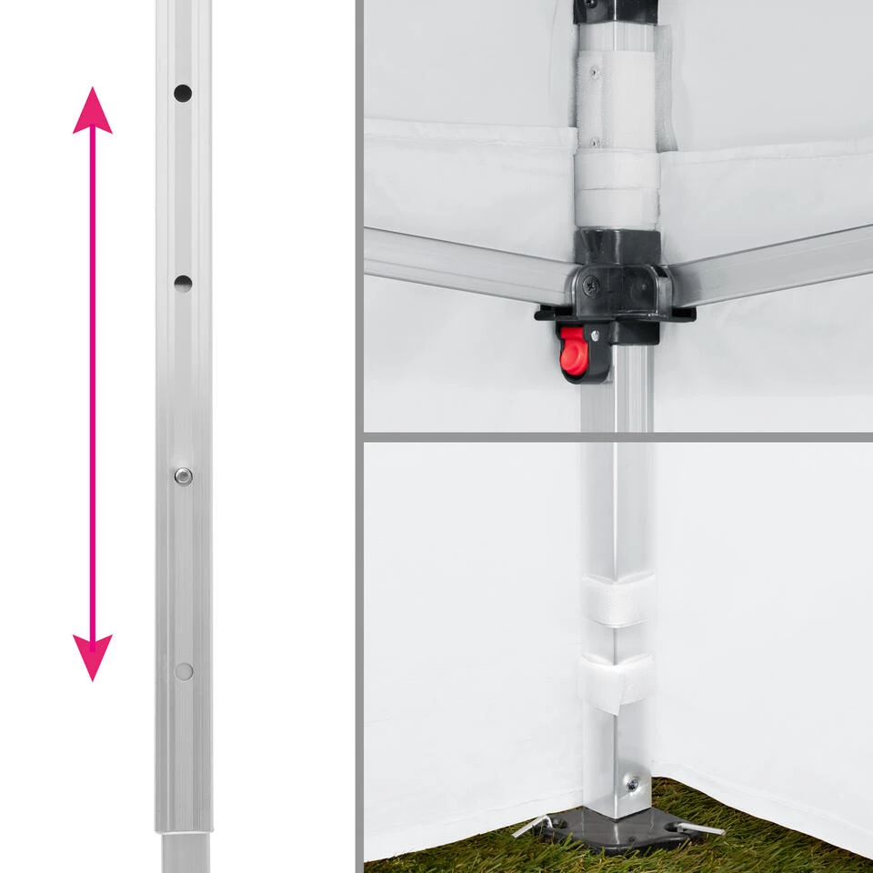Relax met de natuur als coulisse onder het dak van de partytent van tectake. In enkele minuten is het lichte schaarframe met een eenvoudig kliksysteem gebruiksklaar. Dak en zijden zijn via haken en velcrosluitingen vast met de robuuste stangen verbonden. Naar behoefte kan de hoogte van het roestvrije en waterafstotende paviljoen aangepast worden. Voor eenvoudig transport of plaatsbesparende opslag kan de klaptent compact in de meegeleverde tas opgeborgen worden. Een doordachte constructie: de functionele partytent van tectake.