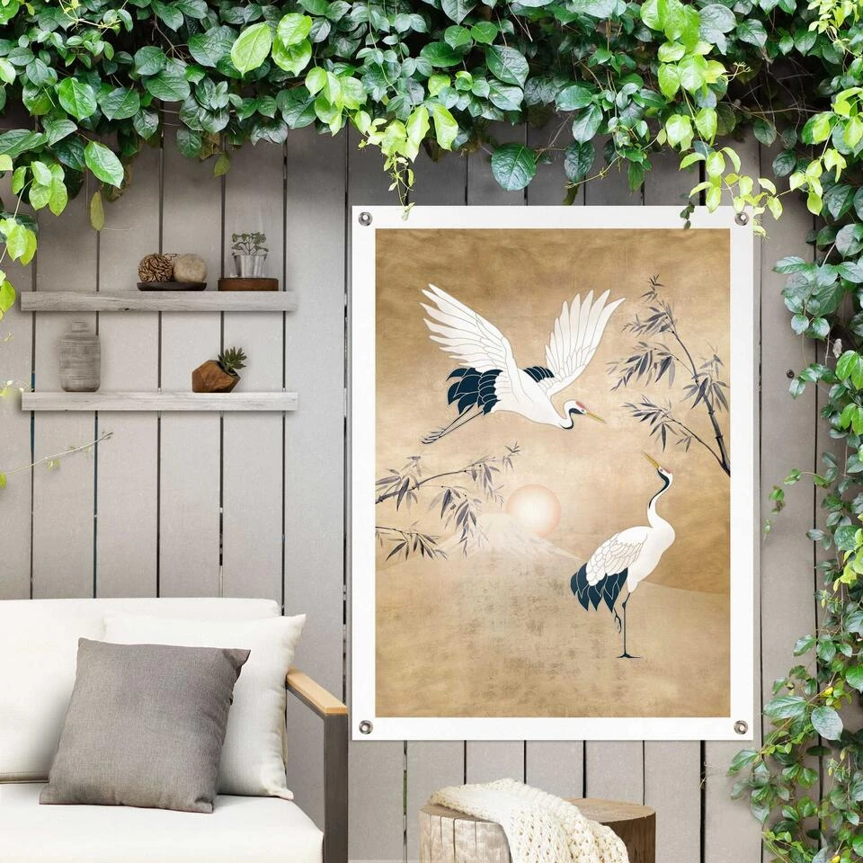 Tuinposter Kraanvogels In Goud 80x60 Cm Geel -Tuinwinkel 1000042872 0103