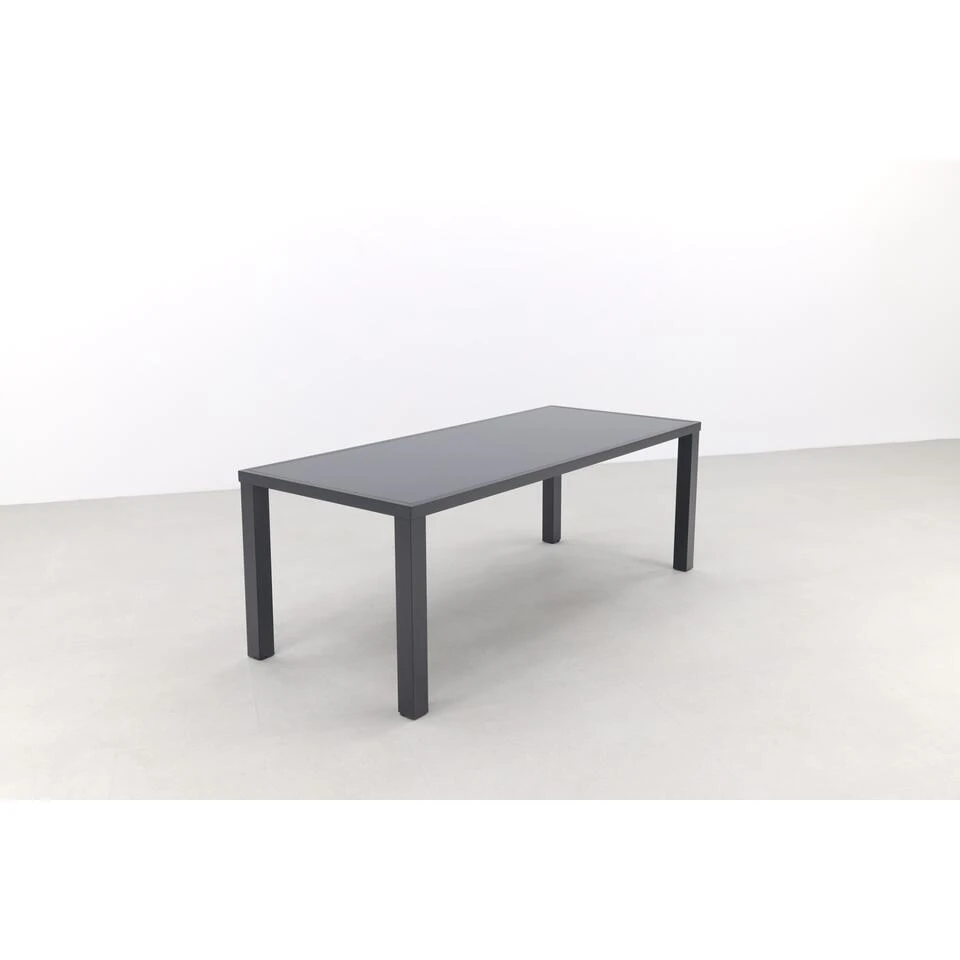 De Alma tuintafel heeft een aluminium frame welke afgewerkt is met een beschermende antracietkleurige poedercoating. Deze coating zorgt ervoor dat het frame kras- en stootvast is. Aluminium is een veelgebruikt materiaalsoort in de tuinmeubelindustrie. Dit materiaal heeft namelijk een lange levensduur, kan niet verroesten en heeft weinig onderhoud nodig. Onder elke tafelpoot zit een verstelbaar dopje zodat je de tuintafel waterpas af kunt stellen. Het tafelblad van de Alma is gemaakt van โspray on glassโ veiligheidsglas welke afgewerkt is met een speciale beschermlaag.